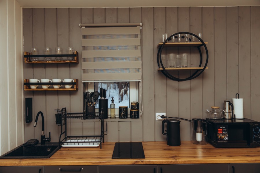 - Оборудование: микроволновая печь, мини-холодильник, набор посуды, плита электрическая, телевизор ЖК, чайный набор посуды, электрочайник